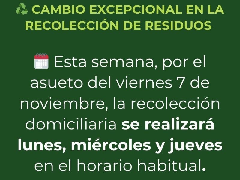 Cambio excepcional en la recolección de residuos