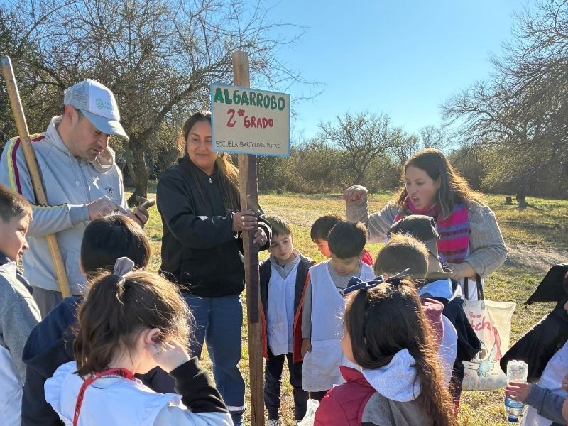 Estudiantes de la Escuela Bartolomé Mitre plantaron un algarrobo en la Gruta San Cayetano